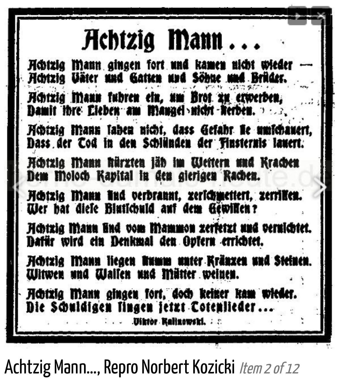 Zeitungsartikel des Verunglückten, sowie der Trauerfeier